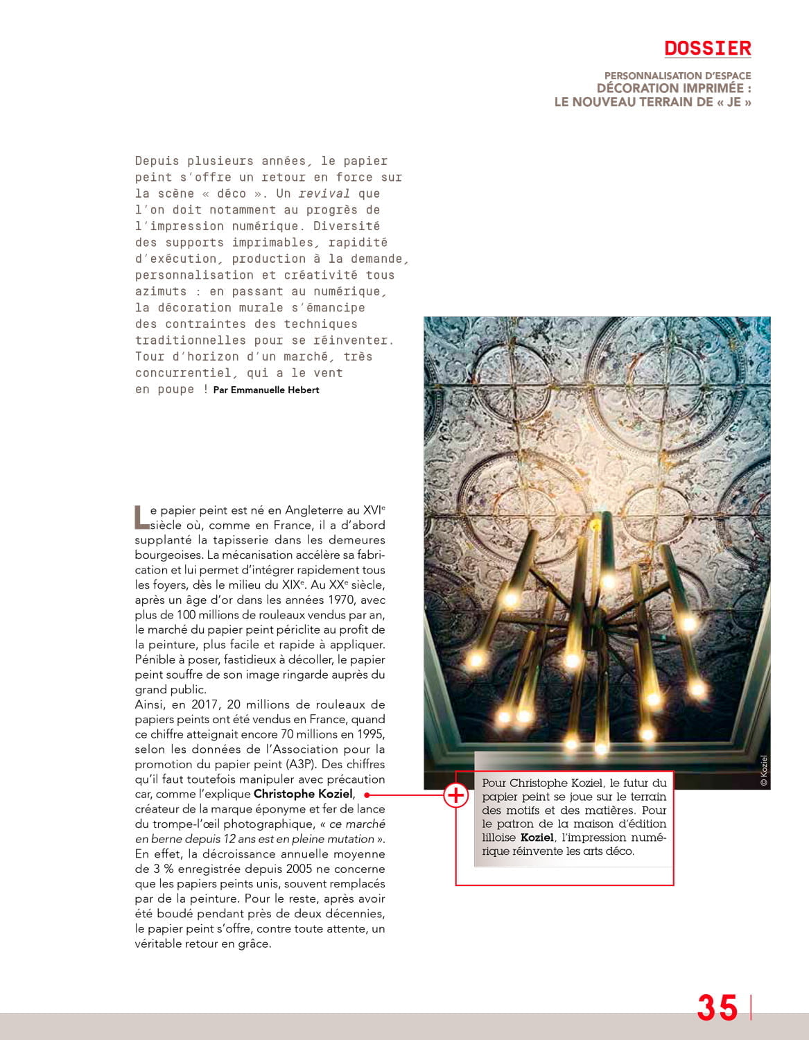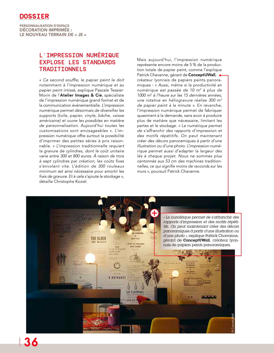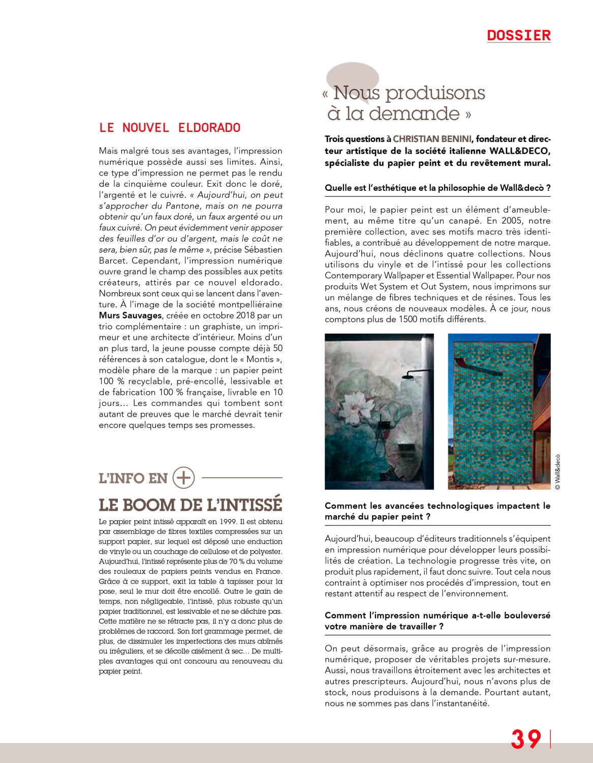 Depuis plusieurs anne?es, le papier peint s’offre un retour en force sur la sce?ne « de?co ». Un revival que l’on doit notamment au progre?s de l’impression nume?rique. Diversite? des supports imprimables, rapidite? d’exe?cution, production a? la demande, personnalisation et cre?ativite? tous azimuts : en passant au nume?rique, la de?coration murale s’e?mancipe des contraintes des techniques traditionnelles pour se re?inventer. Tour d’horizon d’un marche?, tre?s concurrentiel, qui a le vent en poupe !